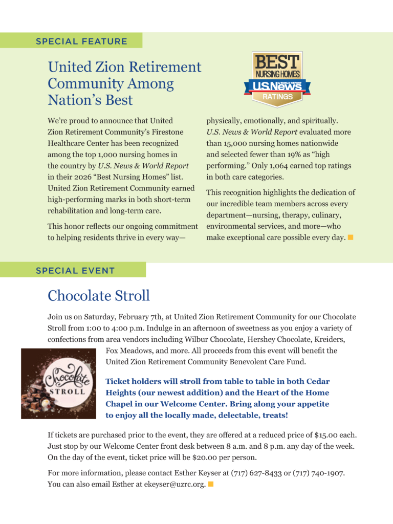 United Zion Retirement Community Named Among Nation’s Best by U.S. News & World Report