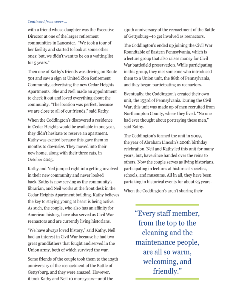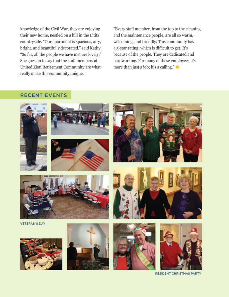 United Zion Residential Living Residents Support Lititz Warwick Community Chest